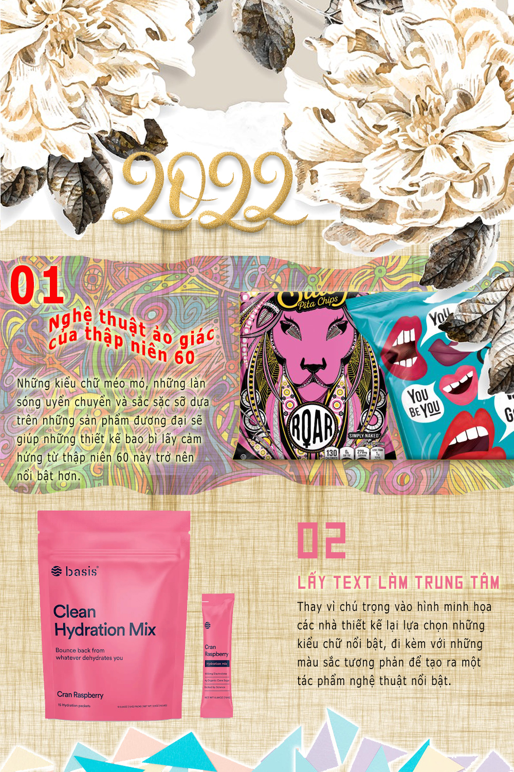 Năm 2022 đã bắt đầu và sẽ có nhiều thay đổi trong xu hướng tiêu dùng dẫn đến nhiều thiết kế bao bì mới sẽ ra đời. Thiết kế bao bì cũng giống như việc tạo ra một tác phẩm nghệ thuật. Bạn dự đoán xu hướng thiết kế nào sẽ truyền cảm hứng trong năm 2022?