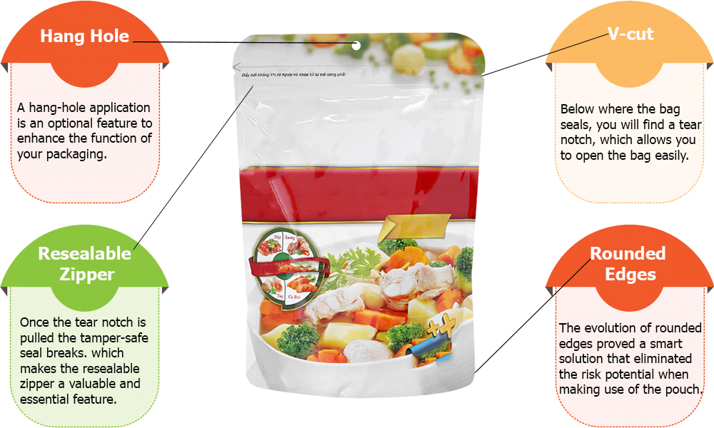 Other key features that can be engineered into stand-up pouch bags include resealability and visibility. Resealability is achieved by matching the right size and strength of the zipper from a wide variety of styles. Visibility simply means that a window can be incorporated into the design to “show off” the contents.