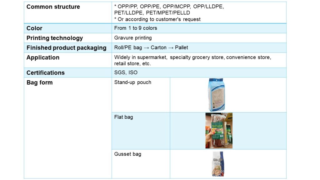 Dried vermicelli are agricultural and food products that are processed into dry fiber commercial products that are very popular in today’s fast-paced life because of their convenience, shortening time in processing as well as easy storage, and longer. Thanks to the application of laminated plastic packaging, consumers can easily access and use these products.