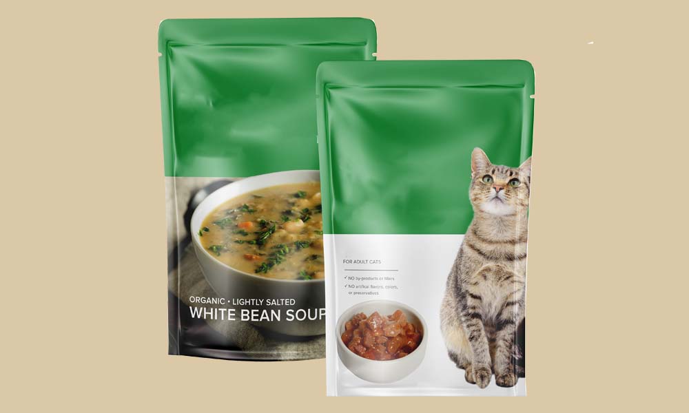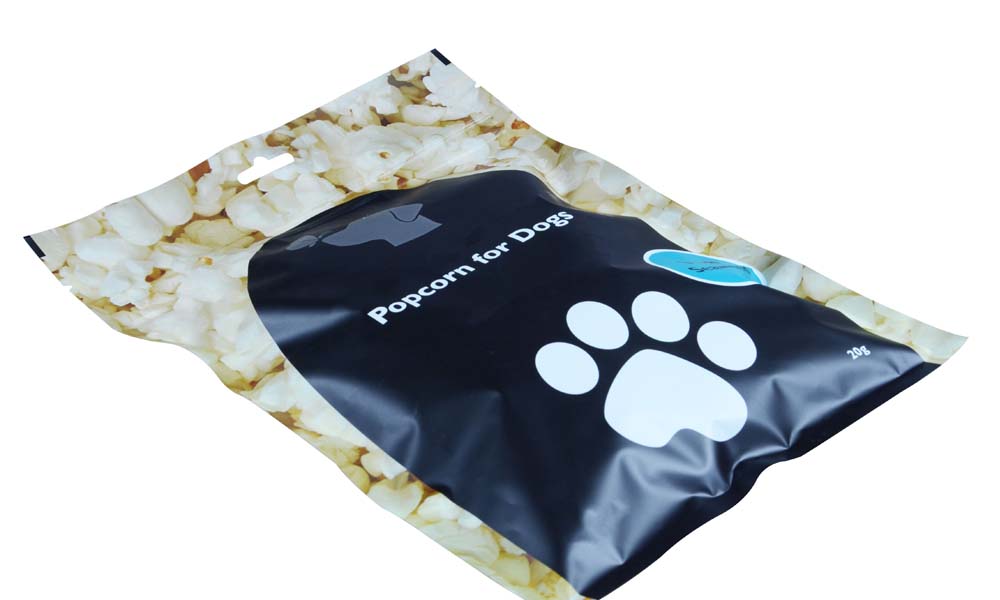 Các nhà sản xuất thức ăn cho thú cưng sử dụng túi niêm phong 3 mặt với các kích cỡ khác nhau để đóng gói thức ăn khô cho thú cưng như bánh quy cho chó.